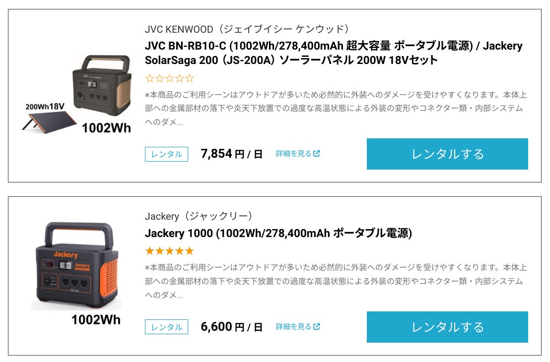 持ち運びに便利なポータブルバッテリーは、普段の生活で使える小型モデルからアウトドアや災害時にも頼りになる1,000Wh以上のハイパワーまで、メーカー、種類、台数とも一気に在庫数を拡大し、レンタル需要のピークに備える体制を整えました。