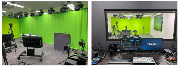 スタジオとして機能するために外部からの防音、室内の反響を抑える吸音、LED照明設備の設置、クロマキー撮影用カーテンなどの施工一式と、動画撮影に必要となる機材の選択と調達、設置調整、導入時の操作説明から保守サービスまでを「スタジオ構築コンサルティング」としてワンストップで提供。